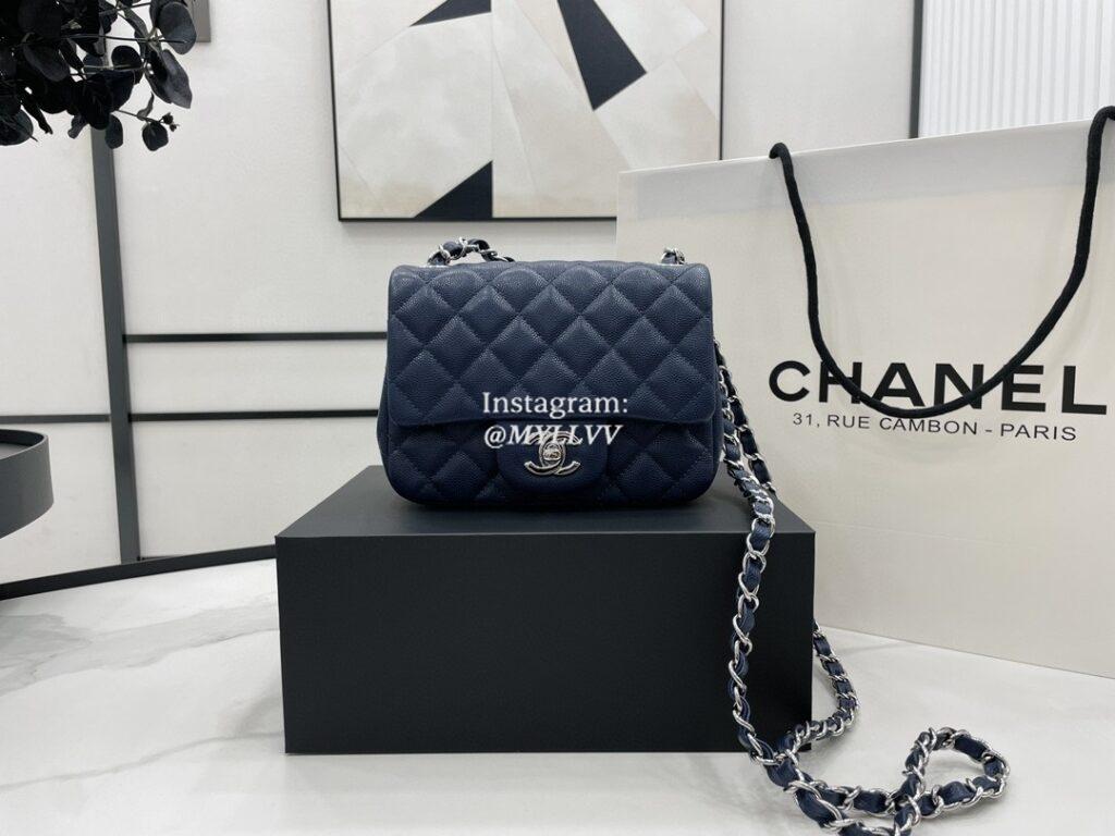Top Quality Version:MYLLVV » Chanel Diamond Plaid Caviar Cowhide Classic Flap Bag Dark Blue With Silver 01115