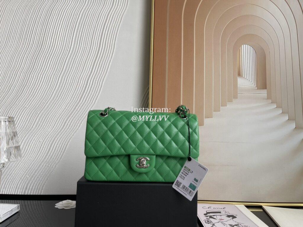 Top Quality Version:MYLLVV » Chanel Diamond Plaid Caviar Cowhide Classic Flap Bag Green With Silver 01112