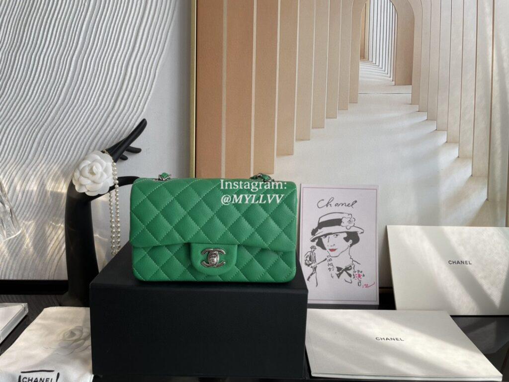 Top Quality Version:MYLLVV » Chanel Diamond Plaid Caviar Cowhide Classic Flap Bag Green With Silver 01116