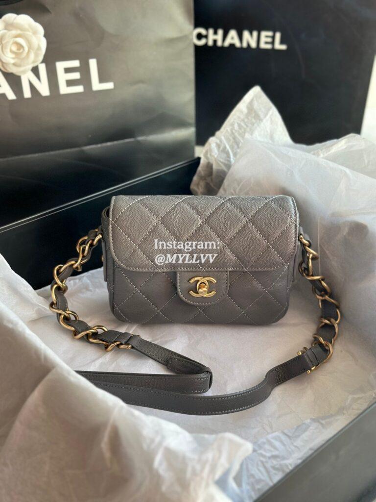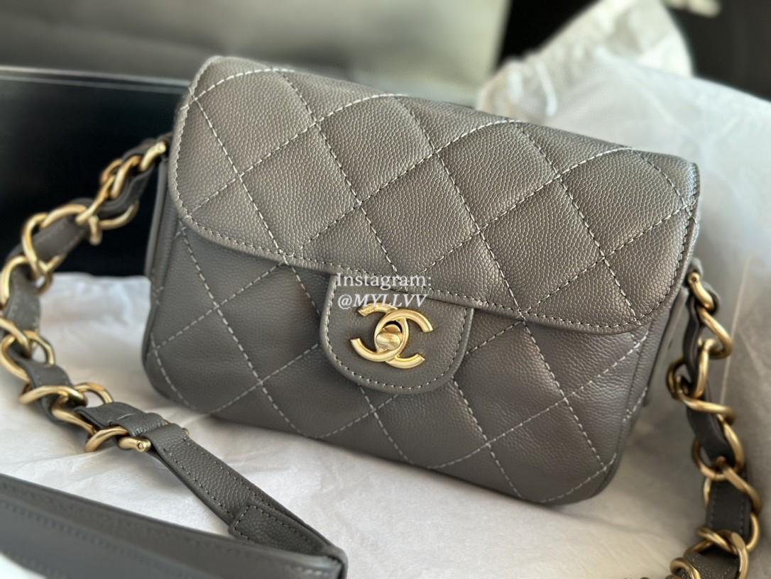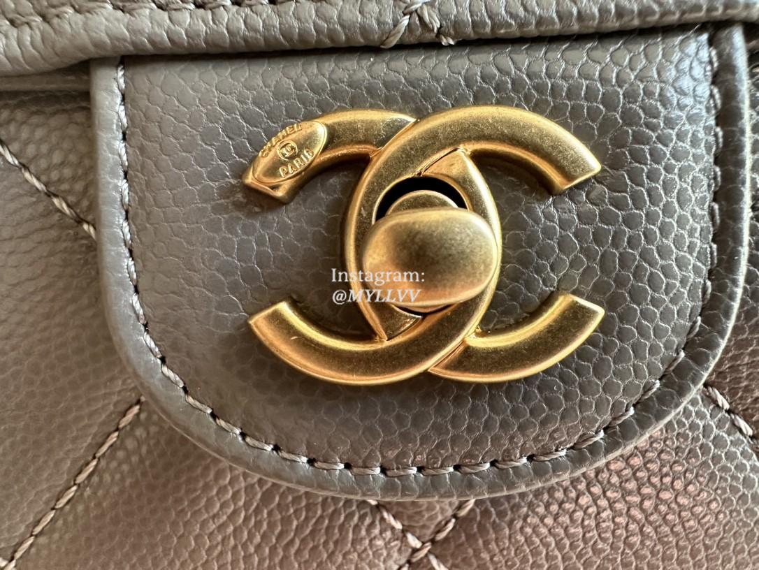 Top Quality Version:MYLLVV » Chanel Diamond Plaid Caviar Cowhide Classic Flap Bag Grey With Gold AS3181