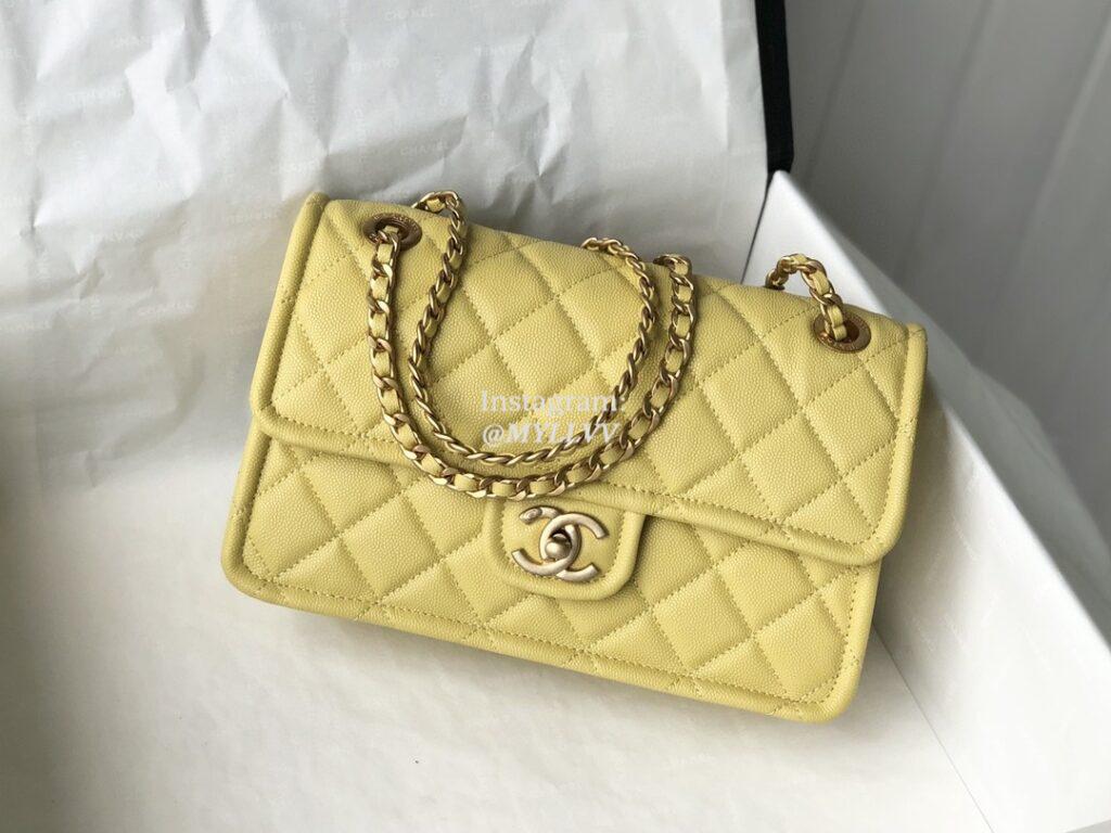 Top Quality Version:MYLLVV » Chanel Diamond Plaid Caviar Cowhide Classic Flap Bag Lemon Yellow With Gold AS2357