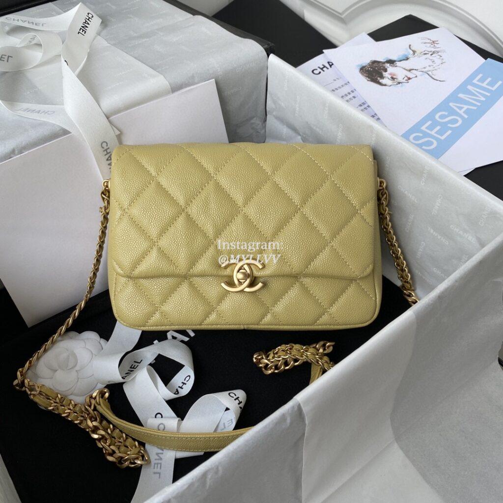 Top Quality Version:MYLLVV » Chanel Diamond Plaid Caviar Cowhide Classic Flap Bag Lemon Yellow With Gold AS3103
