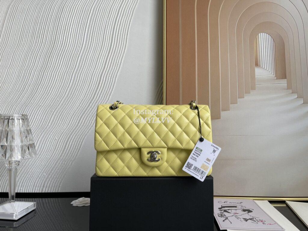 Top Quality Version:MYLLVV » Chanel Diamond Plaid Caviar Cowhide Classic Flap Bag Lemon Yellow With Silver 01112