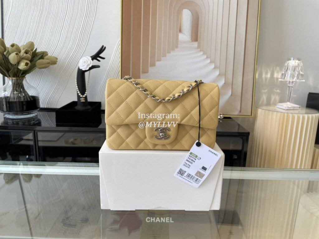 Top Quality Version:MYLLVV » Chanel Diamond Plaid Caviar Cowhide Classic Flap Bag Lemon Yellow With Silver 01116