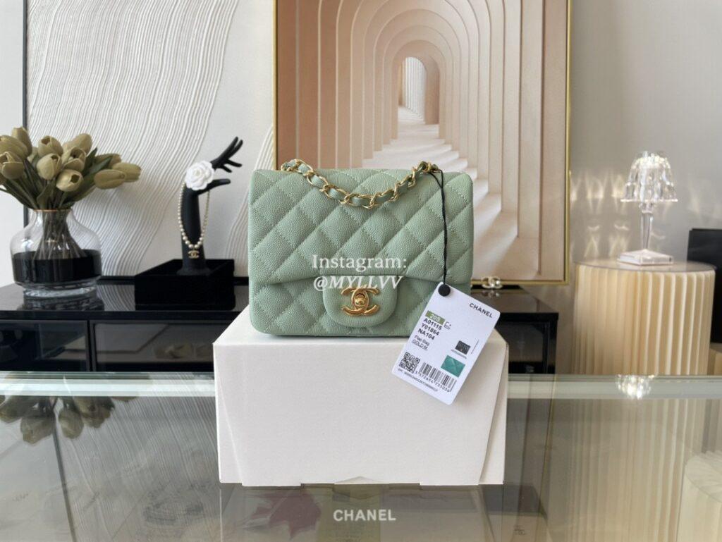 Top Quality Version:MYLLVV » Chanel Diamond Plaid Caviar Cowhide Classic Flap Bag Light Green With Gold 01115