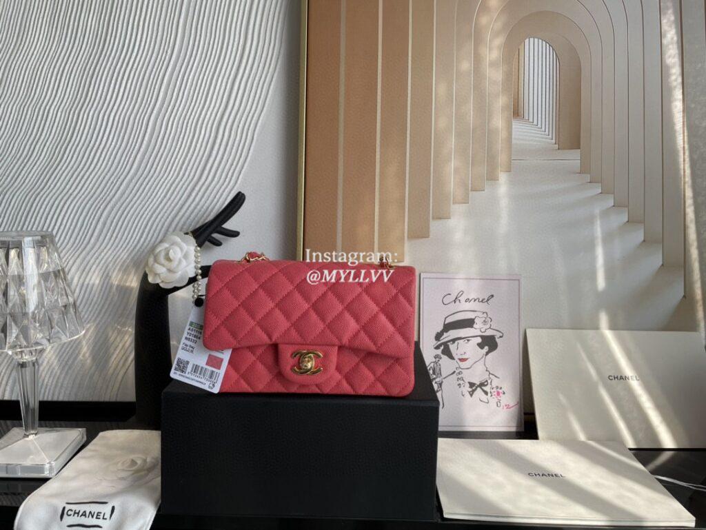 Top Quality Version:MYLLVV » Chanel Diamond Plaid Caviar Cowhide Classic Flap Bag Light Red With Gold 01116