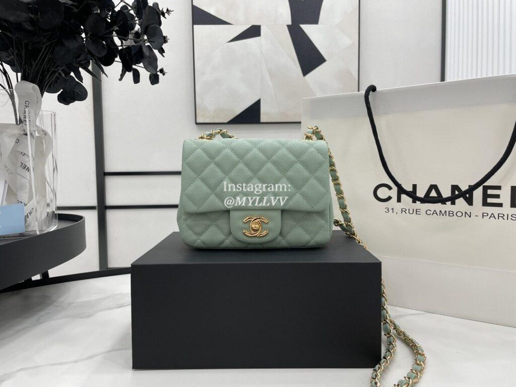 Top Quality Version:MYLLVV » Chanel Diamond Plaid Caviar Cowhide Classic Flap Bag Mint Green With Gold 01115