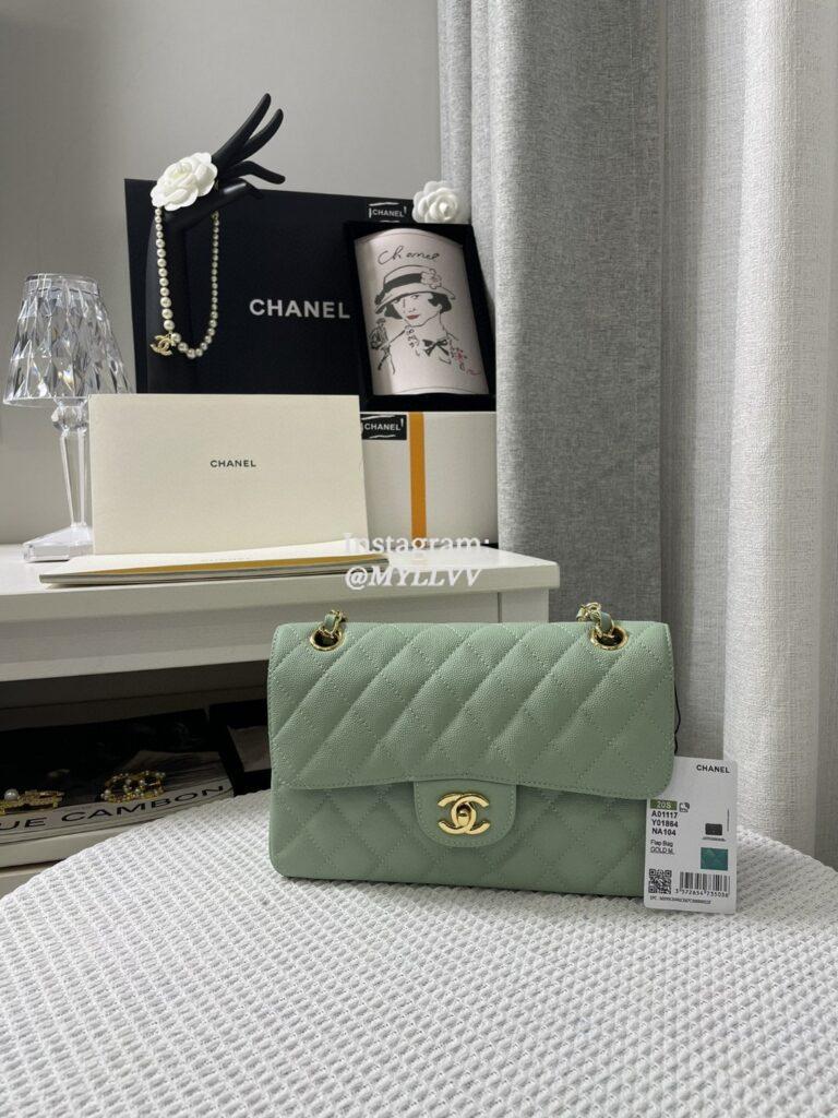 Top Quality Version:MYLLVV » Chanel Diamond Plaid Caviar Cowhide Classic Flap Bag Mint Green With Gold 01118