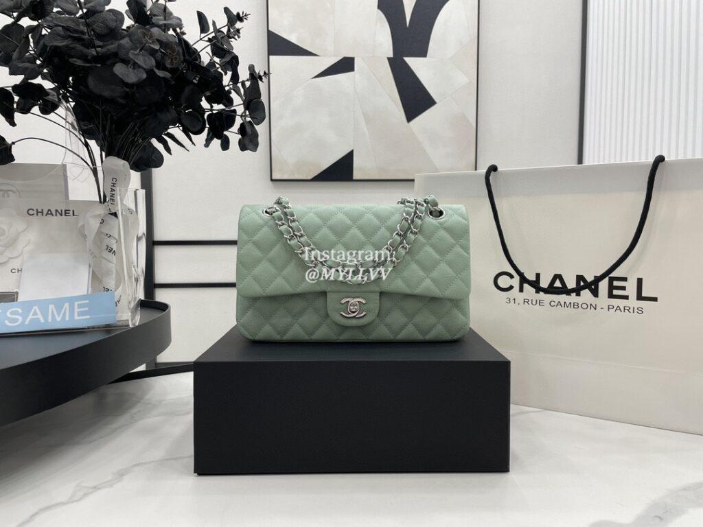 Top Quality Version:MYLLVV » Chanel Diamond Plaid Caviar Cowhide Classic Flap Bag Mint Green With Silver 01112