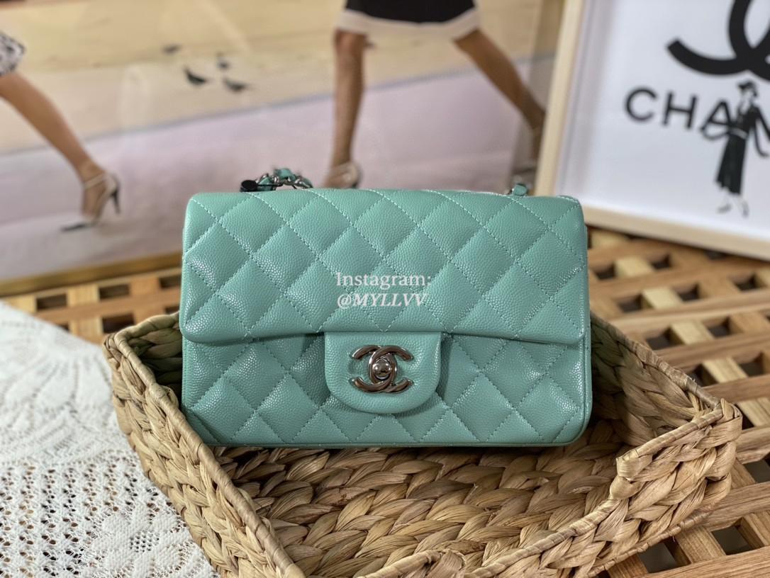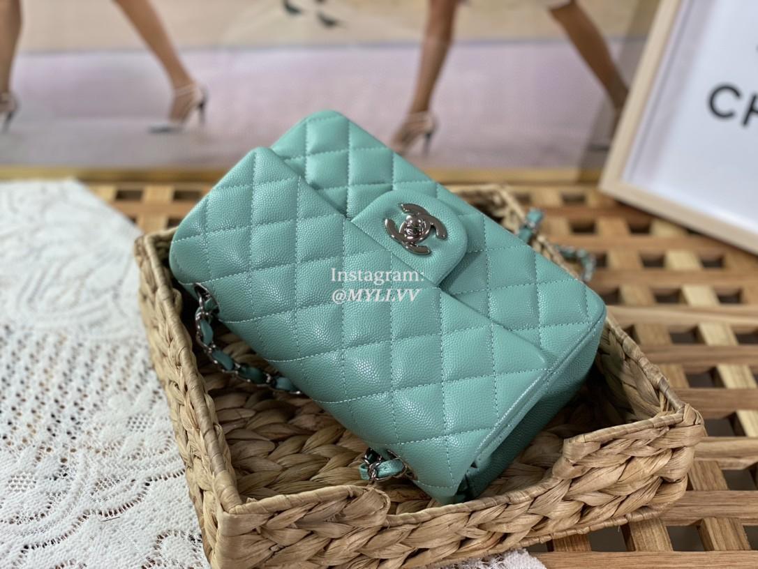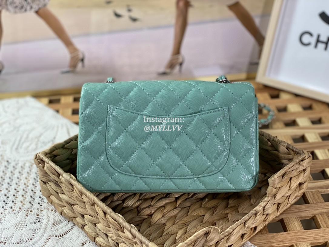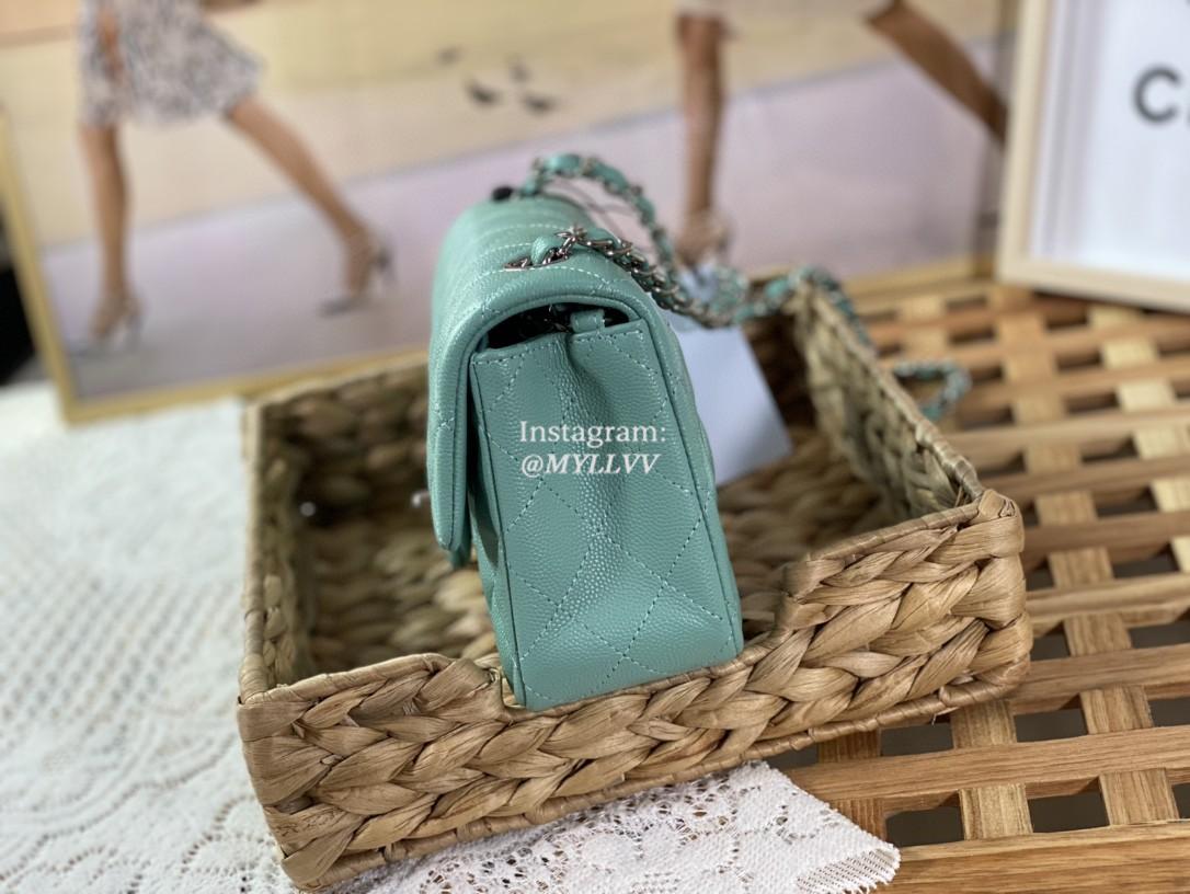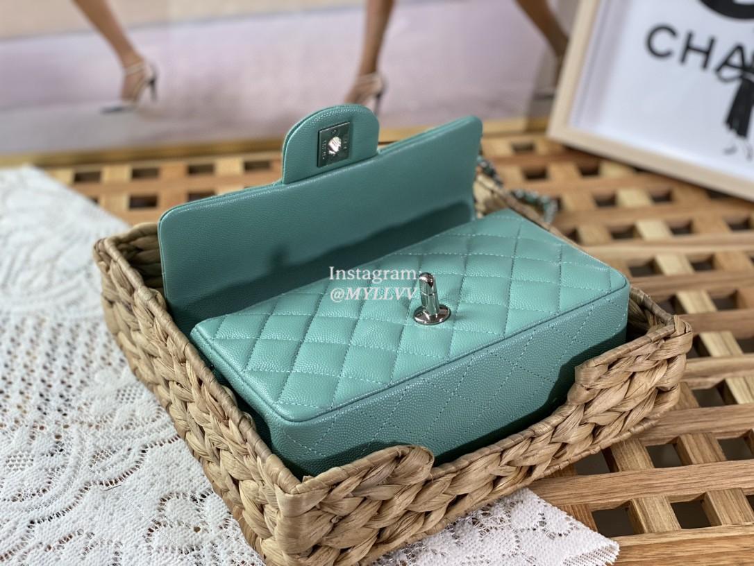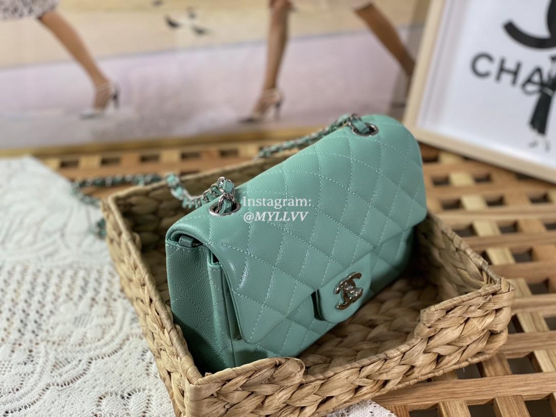 Top Quality Version:MYLLVV » Chanel Diamond Plaid Caviar Cowhide Classic Flap Bag Mint Green With Sliver 1116