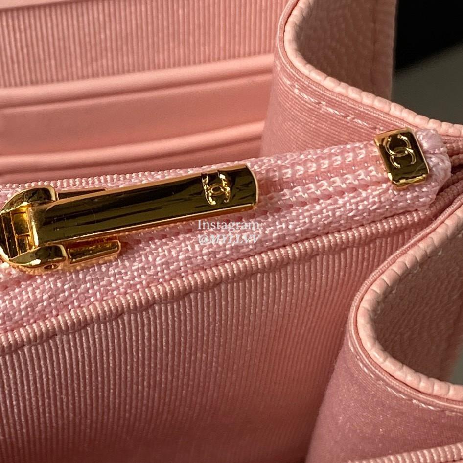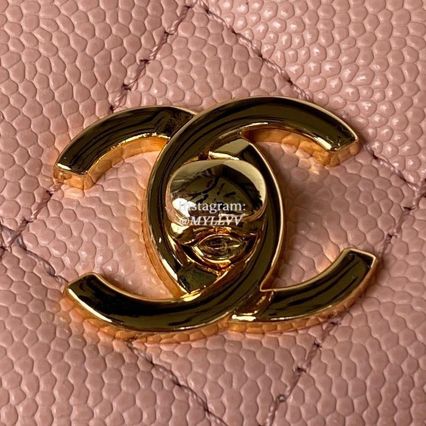 Dimension: 19.0 cm Top Quality Version:MYLLVV » Chanel Diamond Plaid Caviar Cowhide Classic Flap Bag Pink With Gold AP3318
