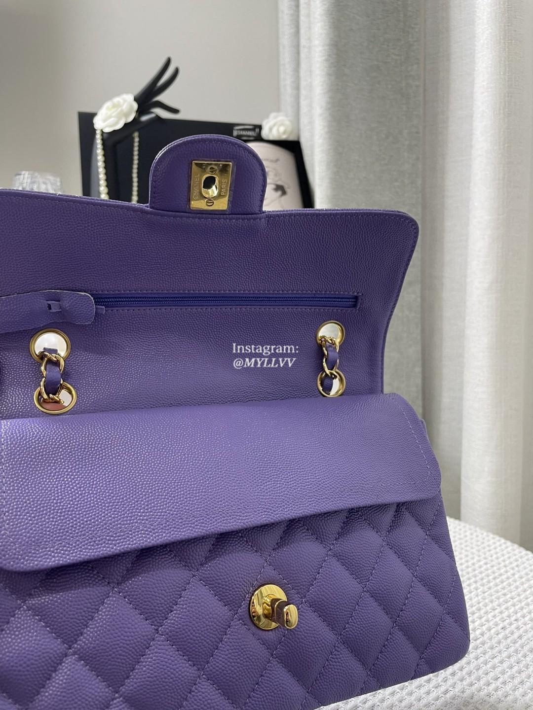 Dimension: 23.0 cm Top Quality Version:MYLLVV » Chanel Diamond Plaid Caviar Cowhide Classic Flap Bag Purple With Gold 01118