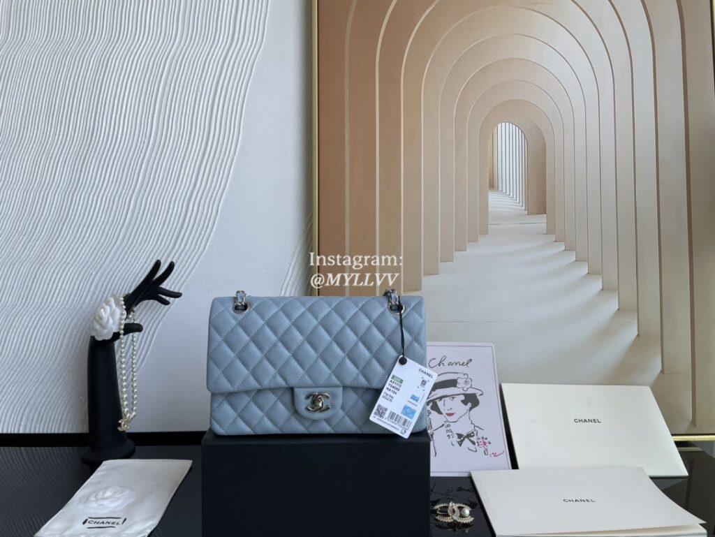 Top Quality Version:MYLLVV » Chanel Diamond Plaid Caviar Cowhide Classic Flap Bag Sky Blue With Silver 01112