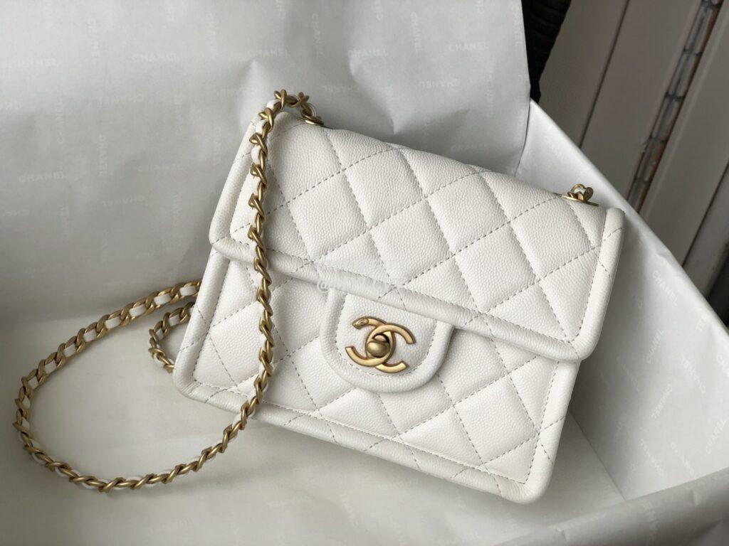 Top Quality Version:MYLLVV » Chanel Diamond Plaid Caviar Cowhide Classic Flap Bag White With Gold AS2356