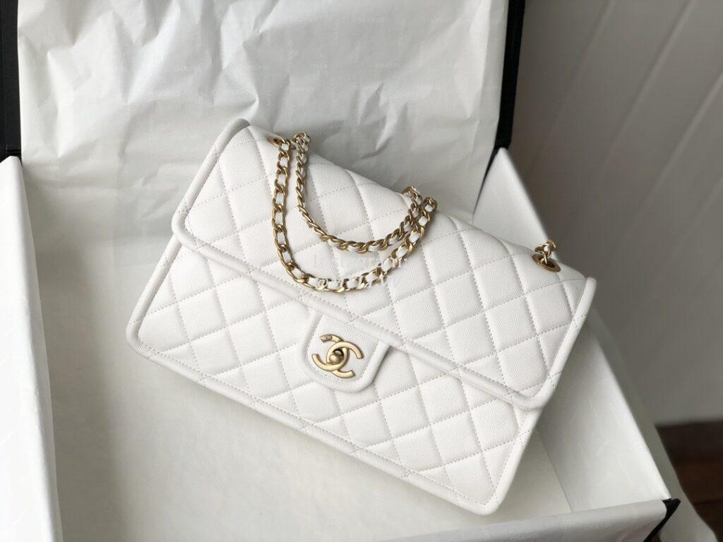 Top Quality Version:MYLLVV » Chanel Diamond Plaid Caviar Cowhide Classic Flap Bag White With Gold AS2358