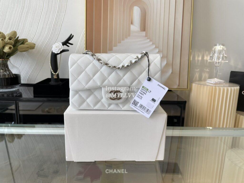 Top Quality Version:MYLLVV » Chanel Diamond Plaid Caviar Cowhide Classic Flap Bag White With Silver 01116