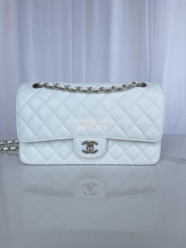 Top Quality Version:MYLLVV » Chanel Diamond Plaid Caviar Cowhide Classic Flap Bag White With Sliver A1112