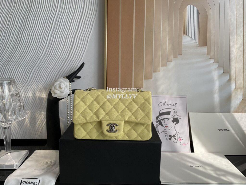 Top Quality Version:MYLLVV » Chanel Diamond Plaid Caviar Cowhide Classic Flap Bag Yellow With Silver 01116
