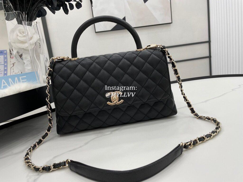 Top Quality Version:MYLLVV » Chanel Diamond Plaid Caviar Cowhide Coco Handle Bag All Black With Gold 92991