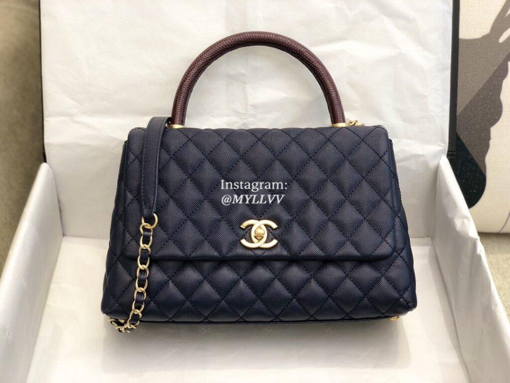 Top Quality Version:MYLLVV » Chanel Diamond Plaid Caviar Cowhide Coco Handle Bag Dark Blue With Gold A07148