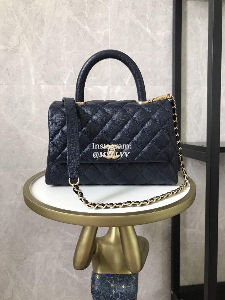 Top Quality Version:MYLLVV » Chanel Diamond Plaid Caviar Cowhide Coco Handle Bag Dark Blue With Gold A92990
