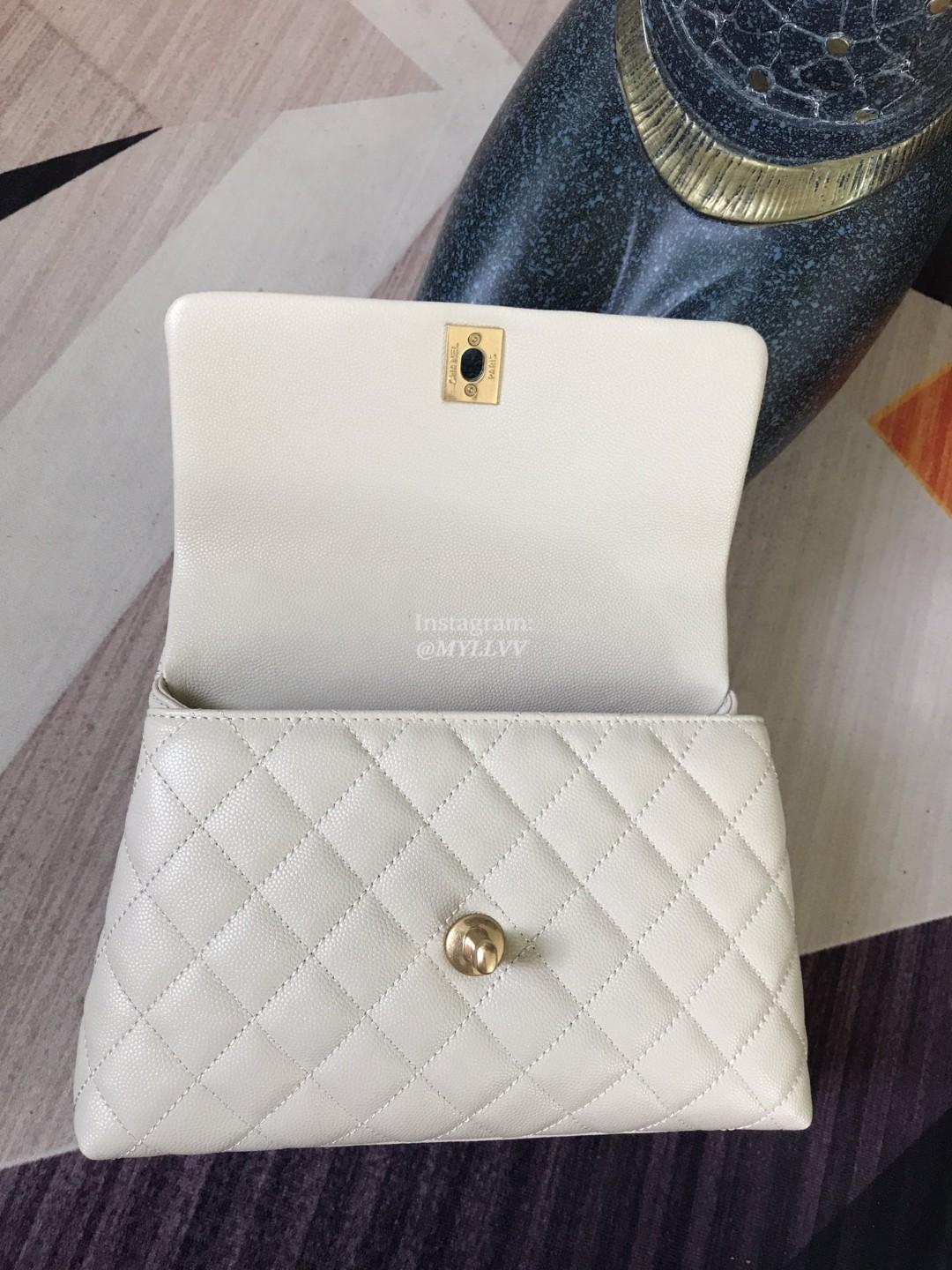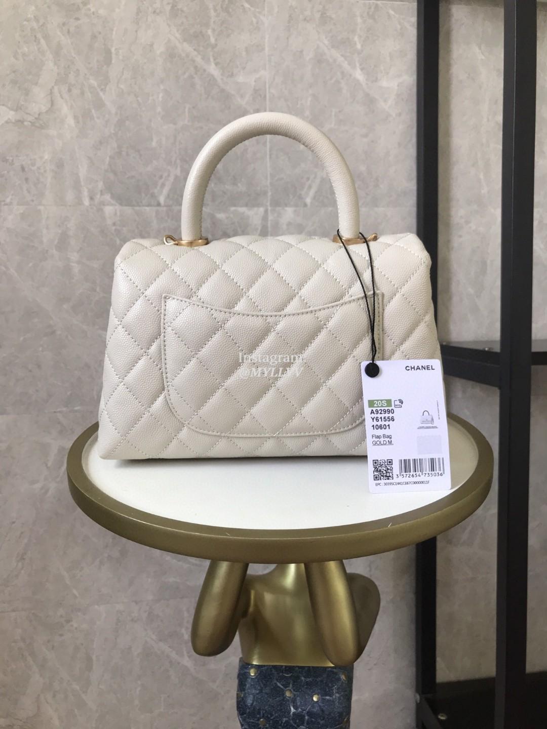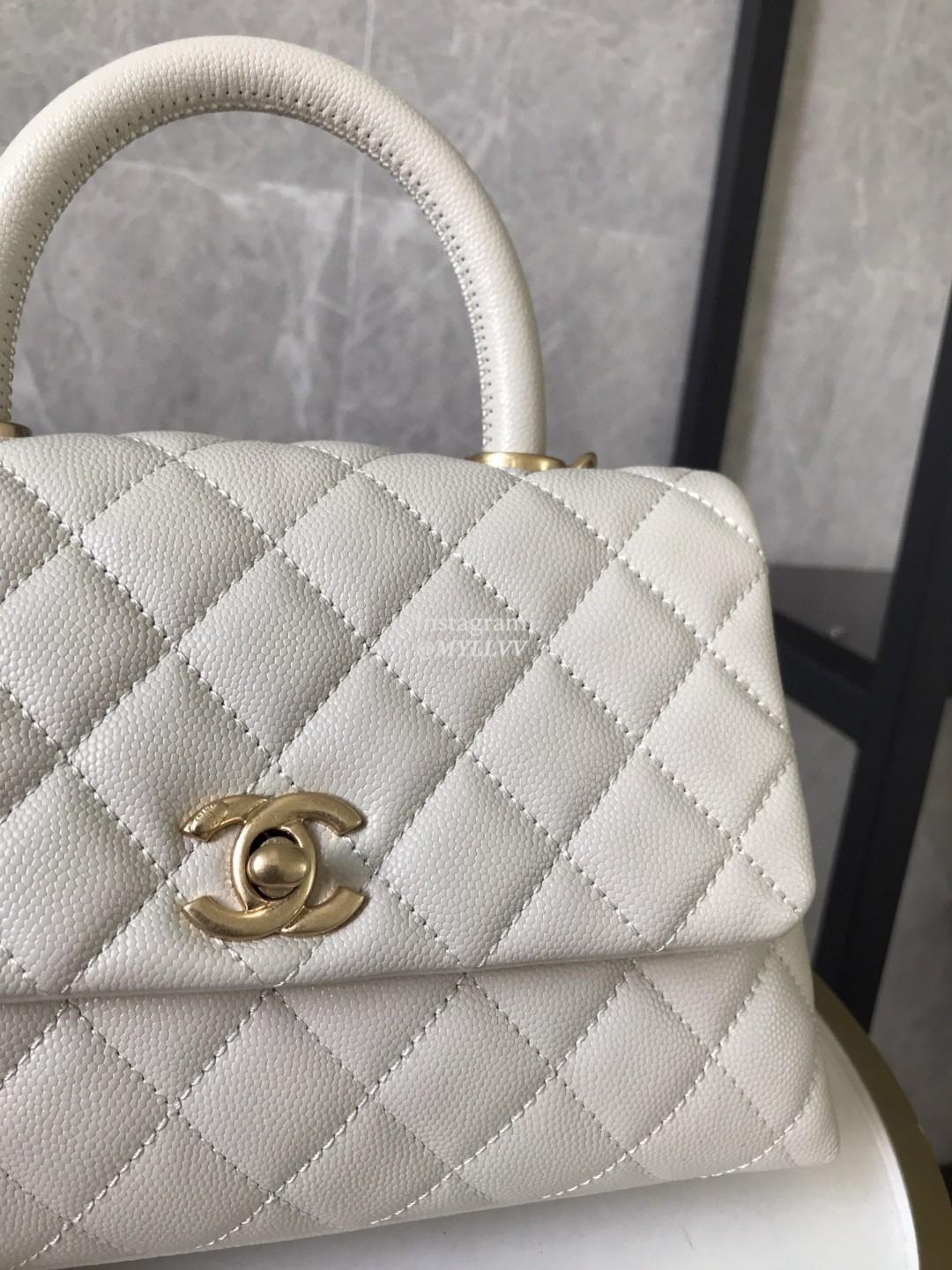 Top Quality Version:MYLLVV » Chanel Diamond Plaid Caviar Cowhide Coco Handle Bag White With Gold A92990