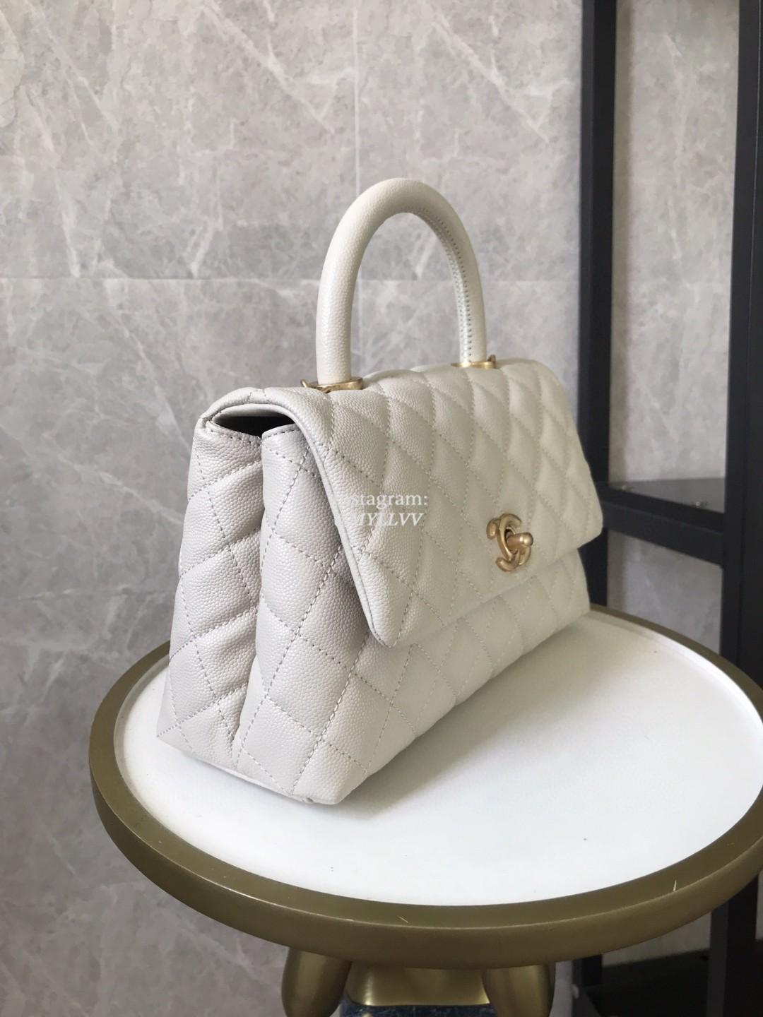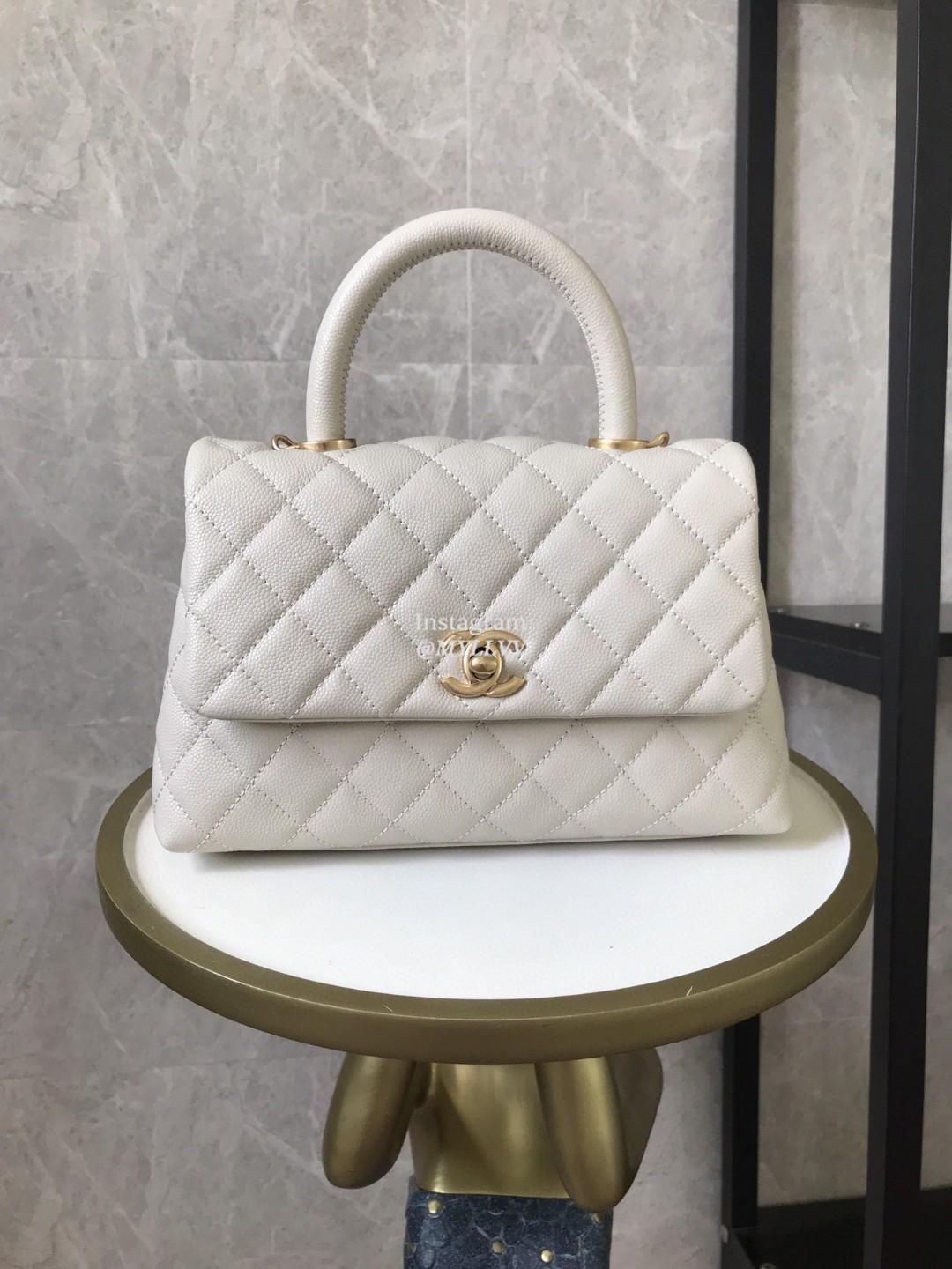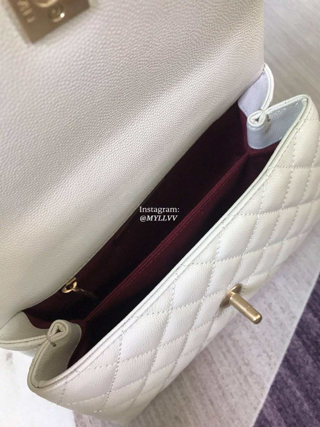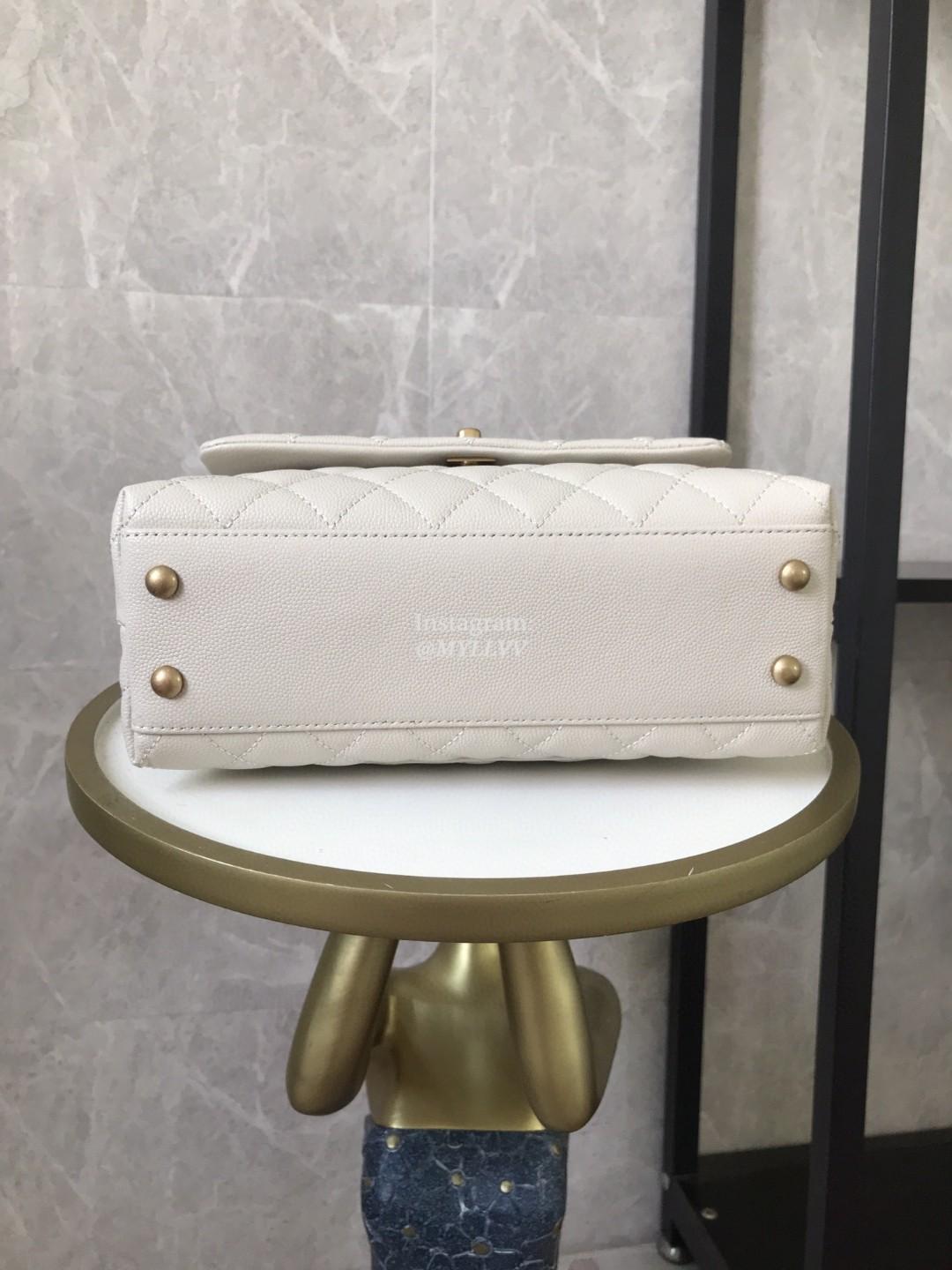 Top Quality Version:MYLLVV » Chanel Diamond Plaid Caviar Cowhide Coco Handle Bag White With Gold A92990