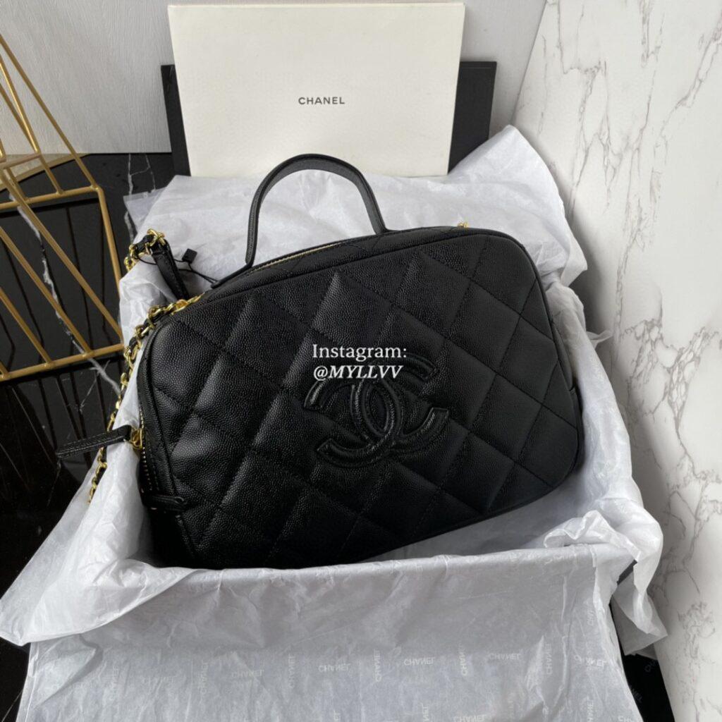 Top Quality Version:MYLLVV » Chanel Diamond Plaid Caviar Cowhide Cosmetic Bag Black With Gold AS3868