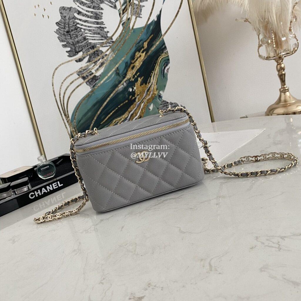 Top Quality Version:MYLLVV » Chanel Diamond Plaid Caviar Cowhide Cosmetic Bag Dark Grey With Gold 81187