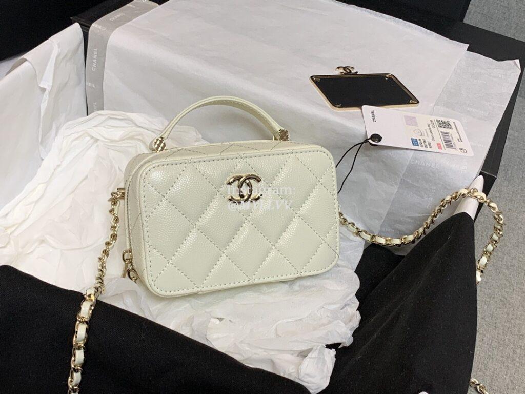 Top Quality Version:MYLLVV » Chanel Diamond Plaid Caviar Cowhide Cosmetic Bag White With Gold AP2634