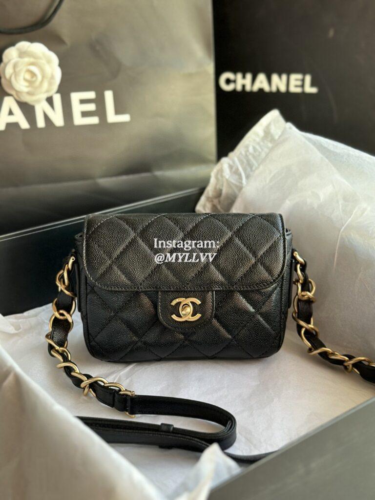 Top Quality Version:MYLLVV » Chanel Diamond Plaid Caviar Cowhide Flap Bag Black With Gold AS3181