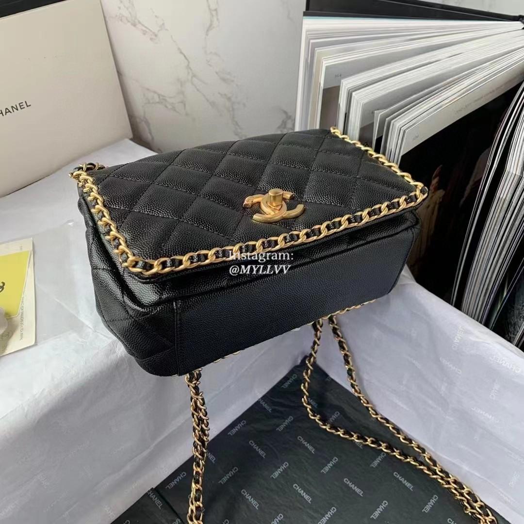 Top Quality Version:MYLLVV » Chanel Diamond Plaid Caviar Cowhide Flap Bag Black With Gold AS3468