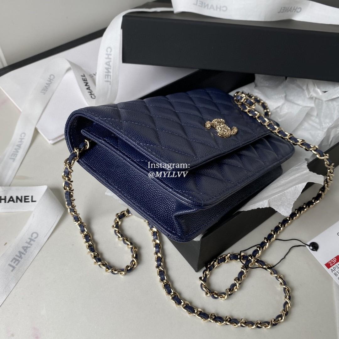 Dimension: 19.0 cm Top Quality Version:MYLLVV » Chanel Diamond Plaid Caviar Cowhide Flap Bag Dark Blue With Gold AP3180