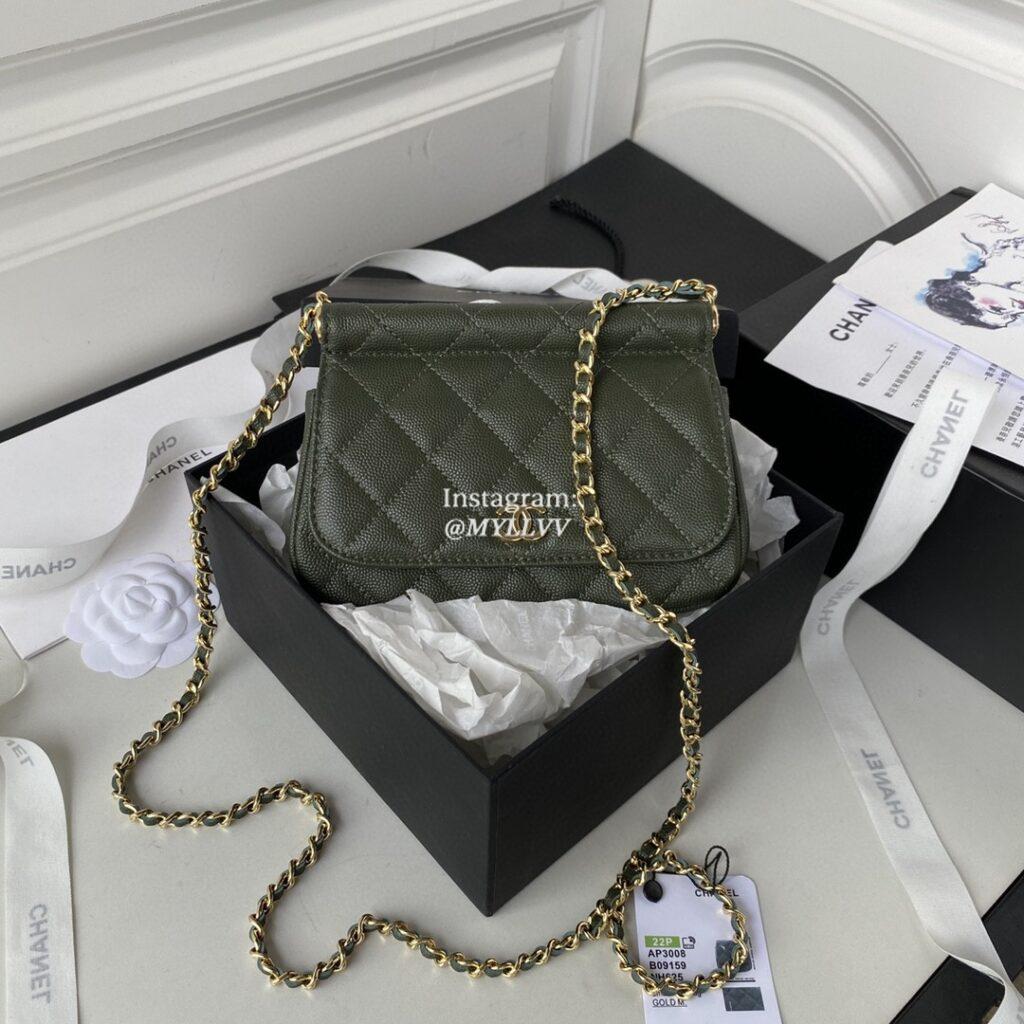 Top Quality Version:MYLLVV » Chanel Diamond Plaid Caviar Cowhide Flap Bag Dark Green With Gold AP3008
