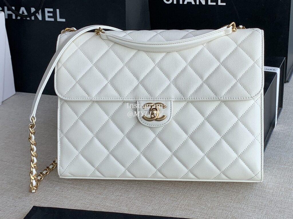 Top Quality Version:MYLLVV » Chanel Diamond Plaid Caviar Cowhide Flap Bag White With Gold AS3529