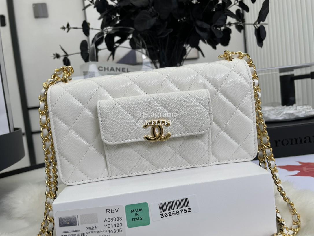 Top Quality Version:MYLLVV » Chanel Diamond Plaid Caviar Cowhide Flap Chain Bag White With Gold A68088