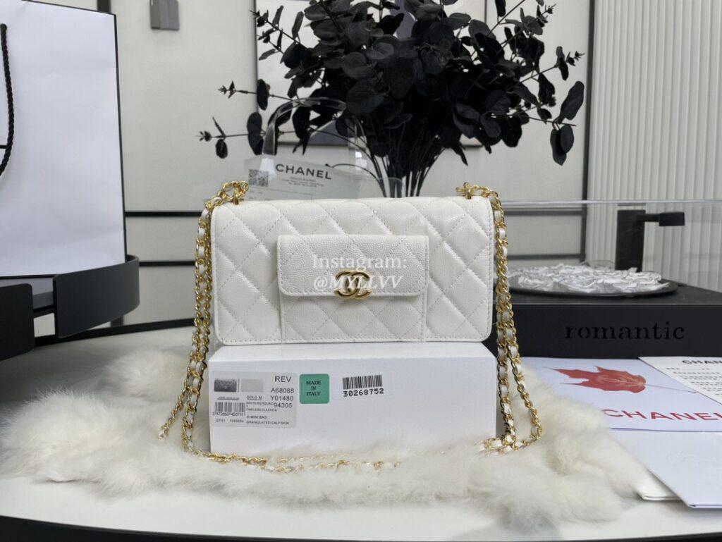 Top Quality Version:MYLLVV » Chanel Diamond Plaid Caviar Cowhide Flap Chain Bag White With Gold A68088