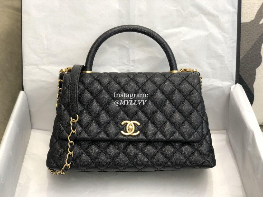 Top Quality Version:MYLLVV » Chanel Diamond Plaid Caviar Cowhide Handle Bag All Black With Gold AS7148