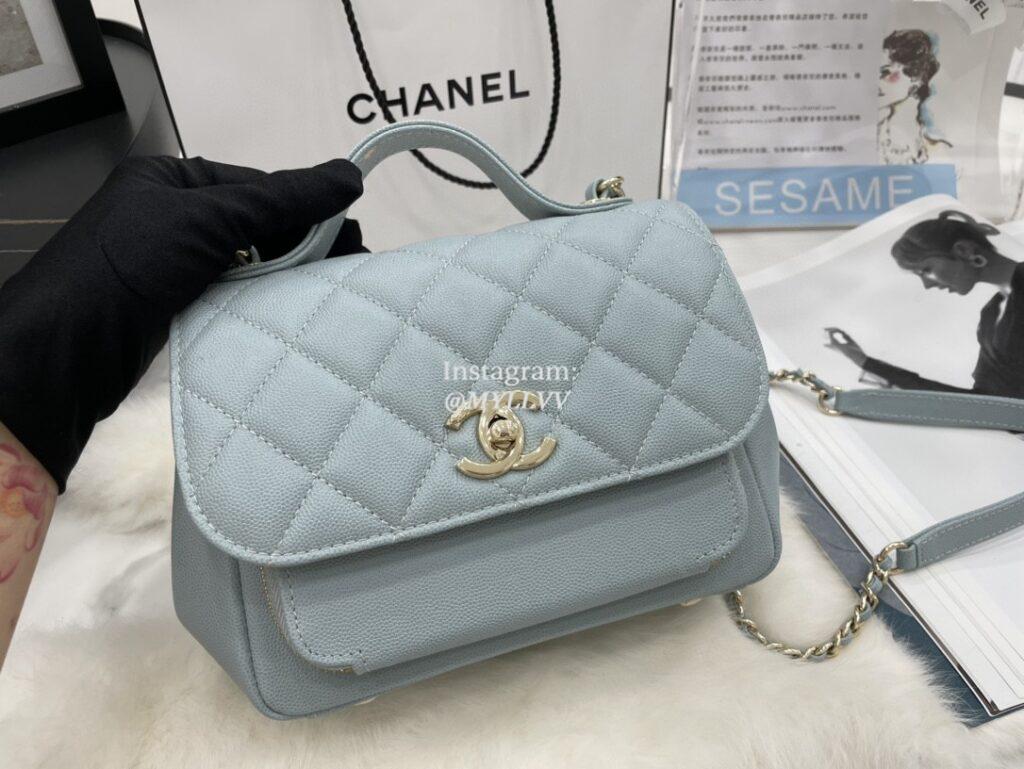 Top Quality Version:MYLLVV » Chanel Diamond Plaid Caviar Cowhide Handle Bag Light Blue With Gold A93749