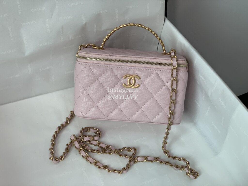 Top Quality Version:MYLLVV » Chanel Diamond Plaid Caviar Cowhide Handle Box Bag Pink With Gold 81195