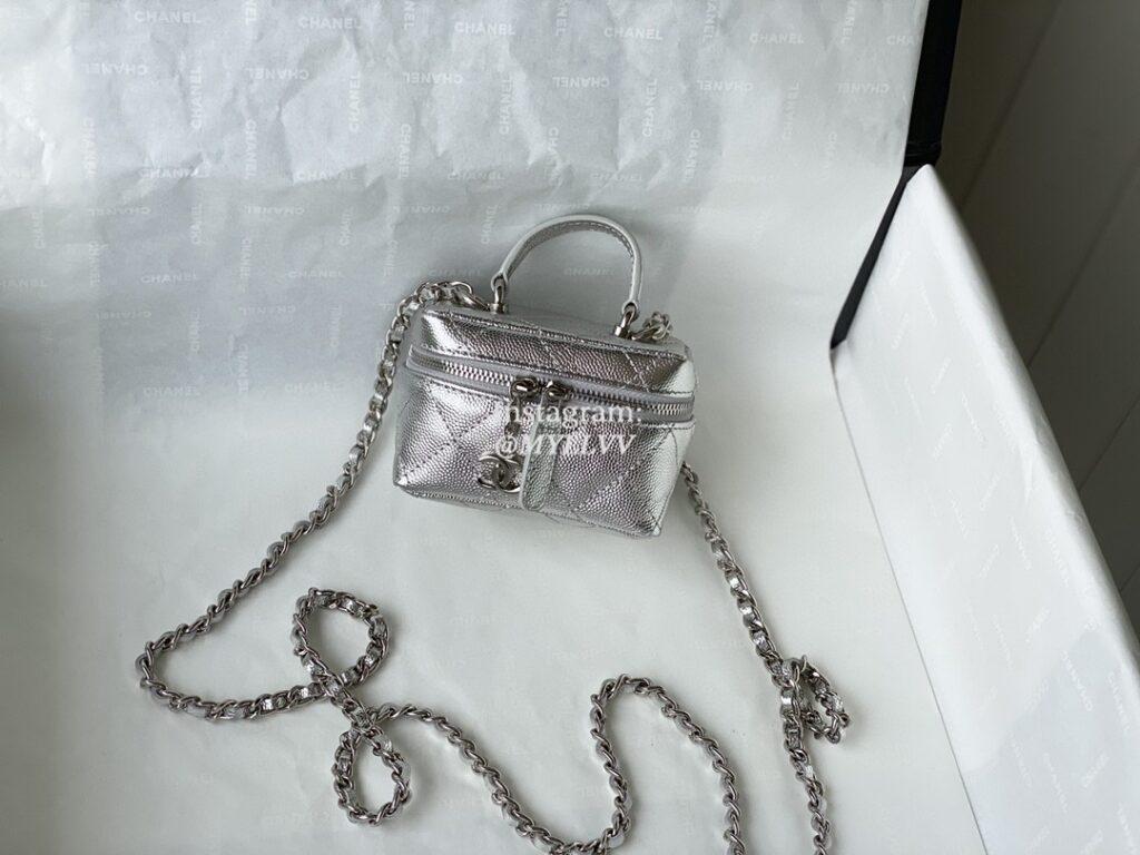 Top Quality Version:MYLLVV » Chanel Diamond Plaid Caviar Cowhide Handle Box Bag Silver With Silver AS2194