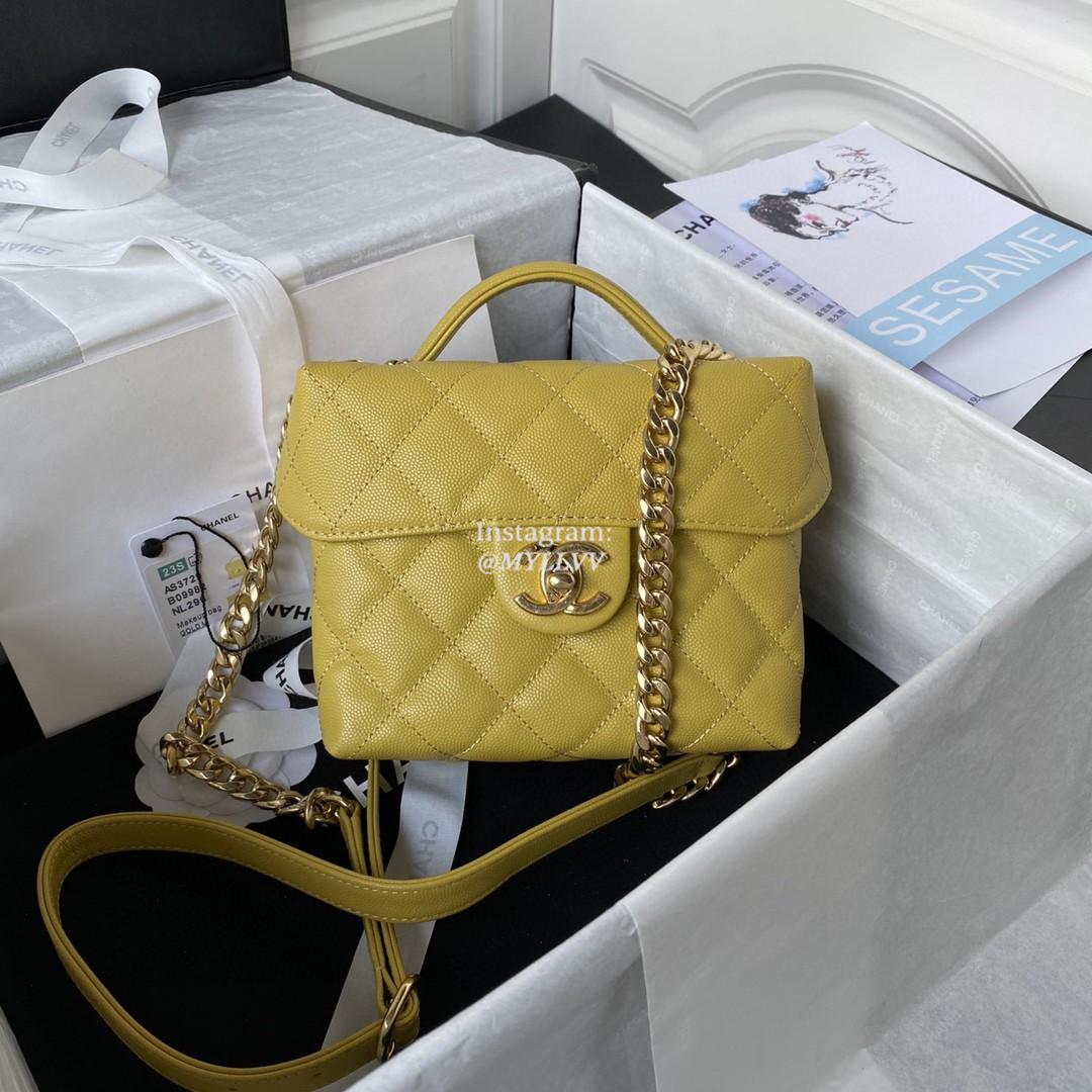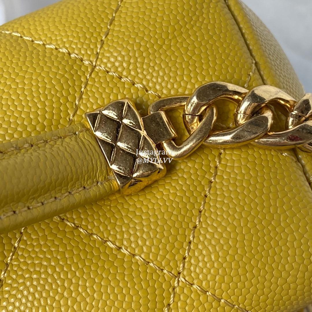 Top Quality Version:MYLLVV » Chanel Diamond Plaid Caviar Cowhide Handle Box Bag Yellow With Gold AS3729