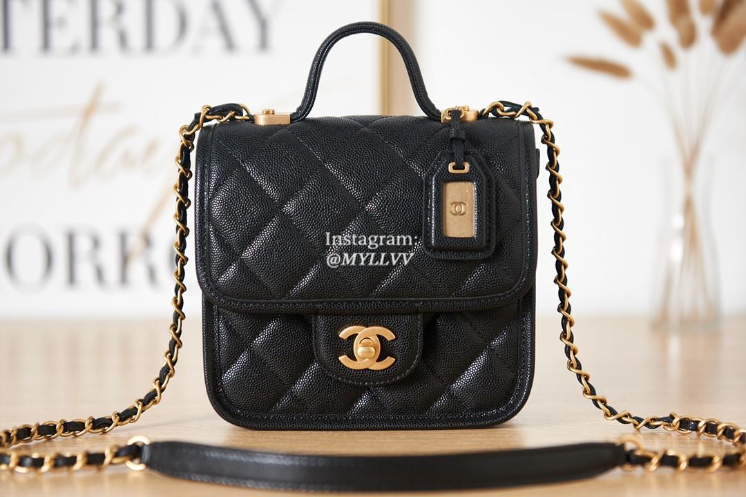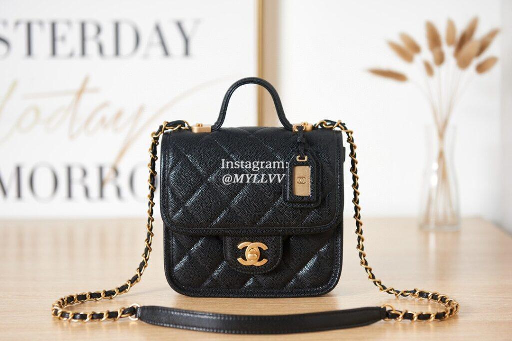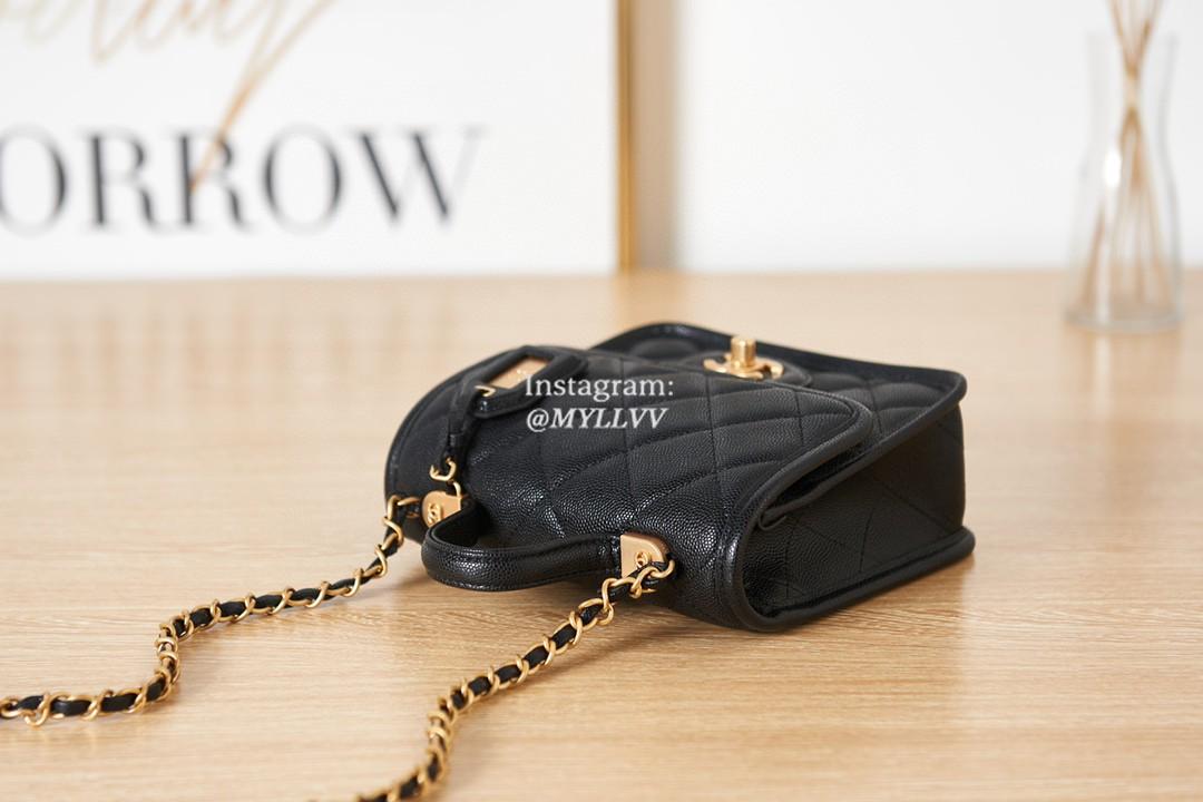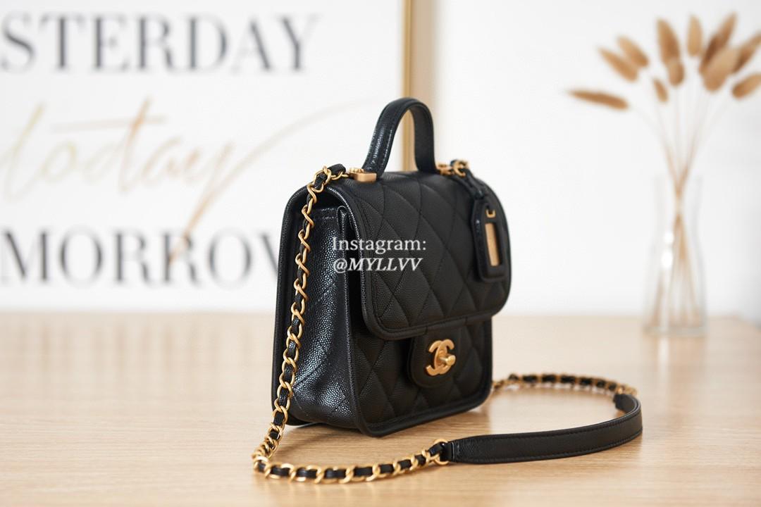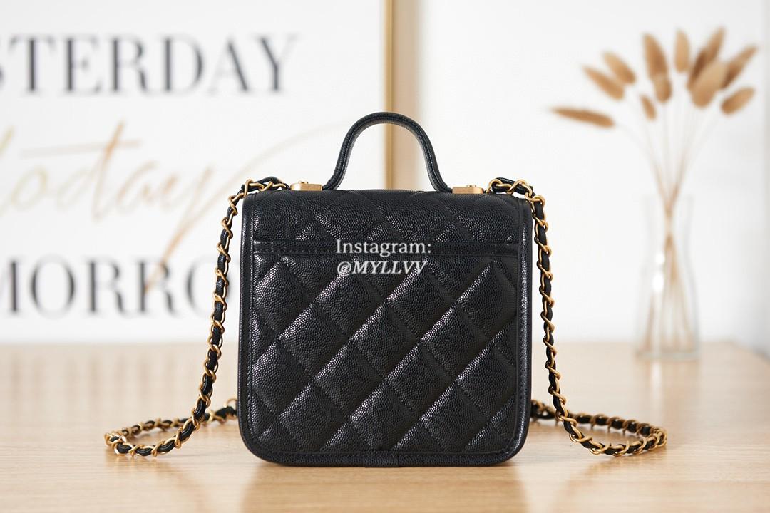 Top Quality Version:MYLLVV » Chanel Diamond Plaid Caviar Cowhide Handle Flap Bag Black With Gold AS3652
