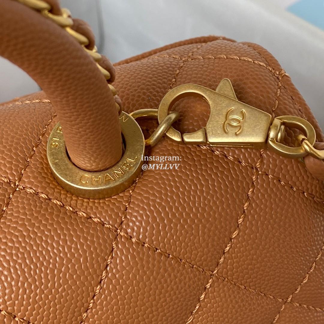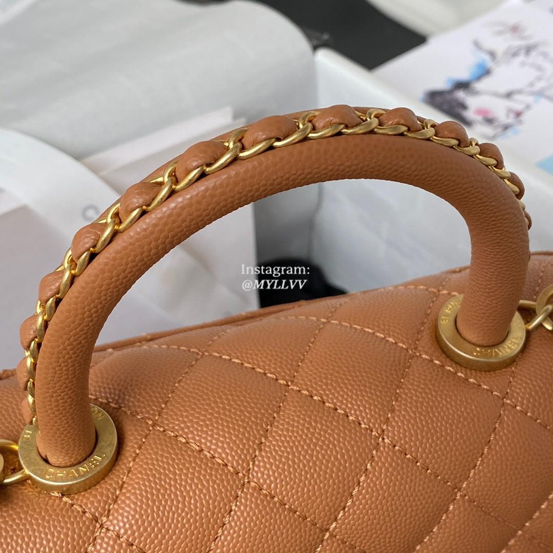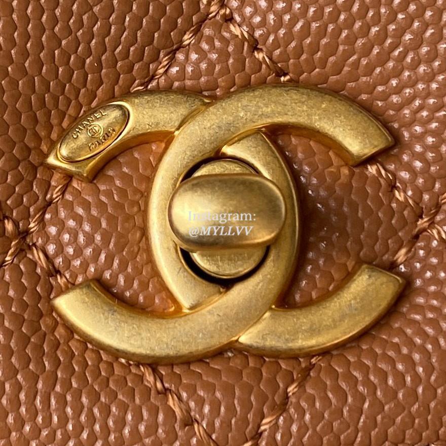 Top Quality Version:MYLLVV » Chanel Diamond Plaid Caviar Cowhide Handle Flap Bag Caramel With Gold 92990