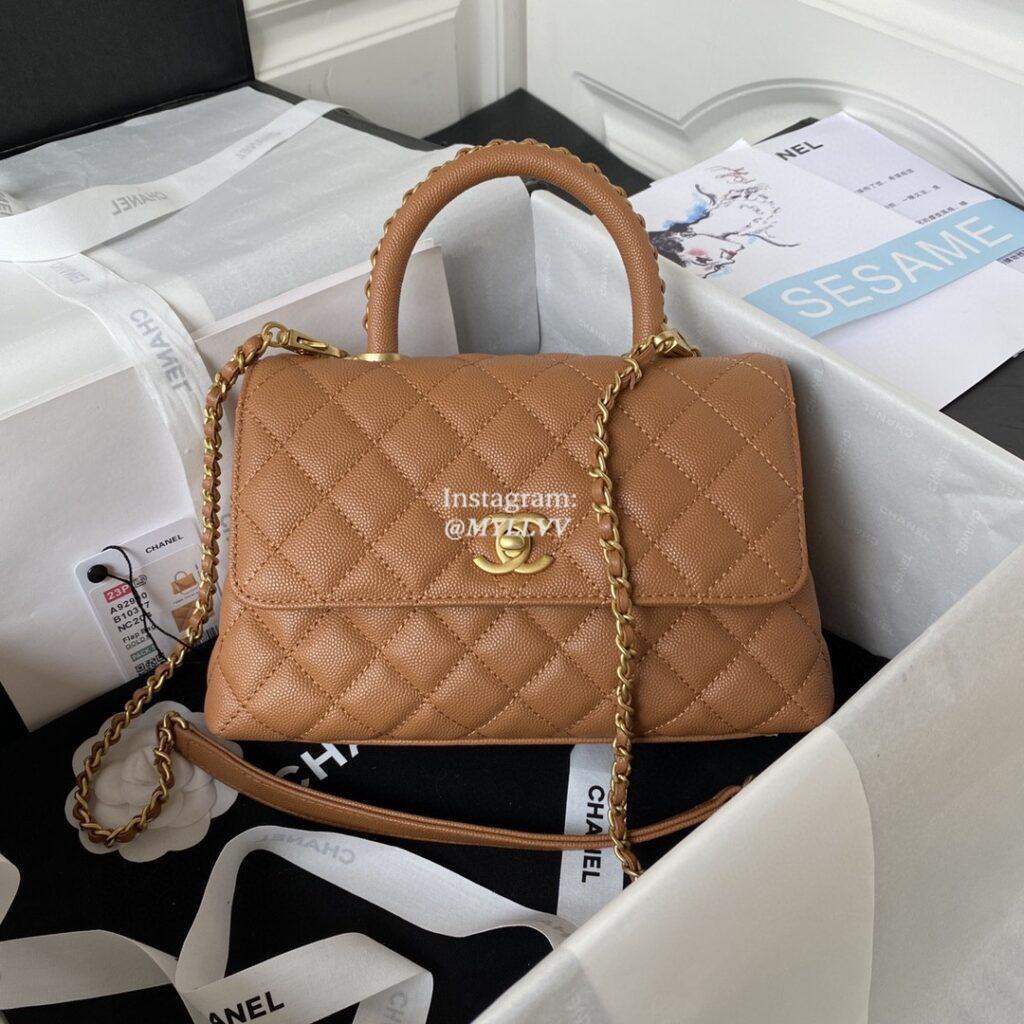 Top Quality Version:MYLLVV » Chanel Diamond Plaid Caviar Cowhide Handle Flap Bag Caramel With Gold 92990