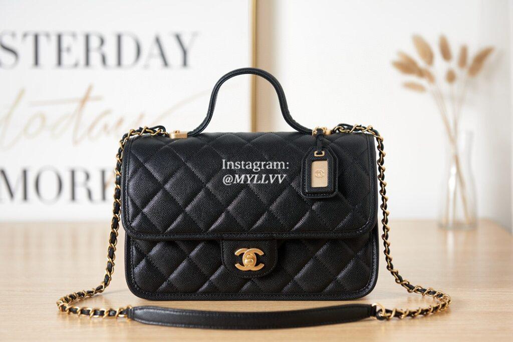 Top Quality Version:MYLLVV » Chanel Diamond Plaid Caviar Cowhide Handle Flap Bag Black With Gold AS3653