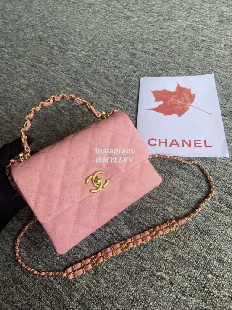 Top Quality Version:MYLLVV » Chanel Diamond Plaid Caviar Cowhide Handle Flap Bag Pink With Gold AS3580