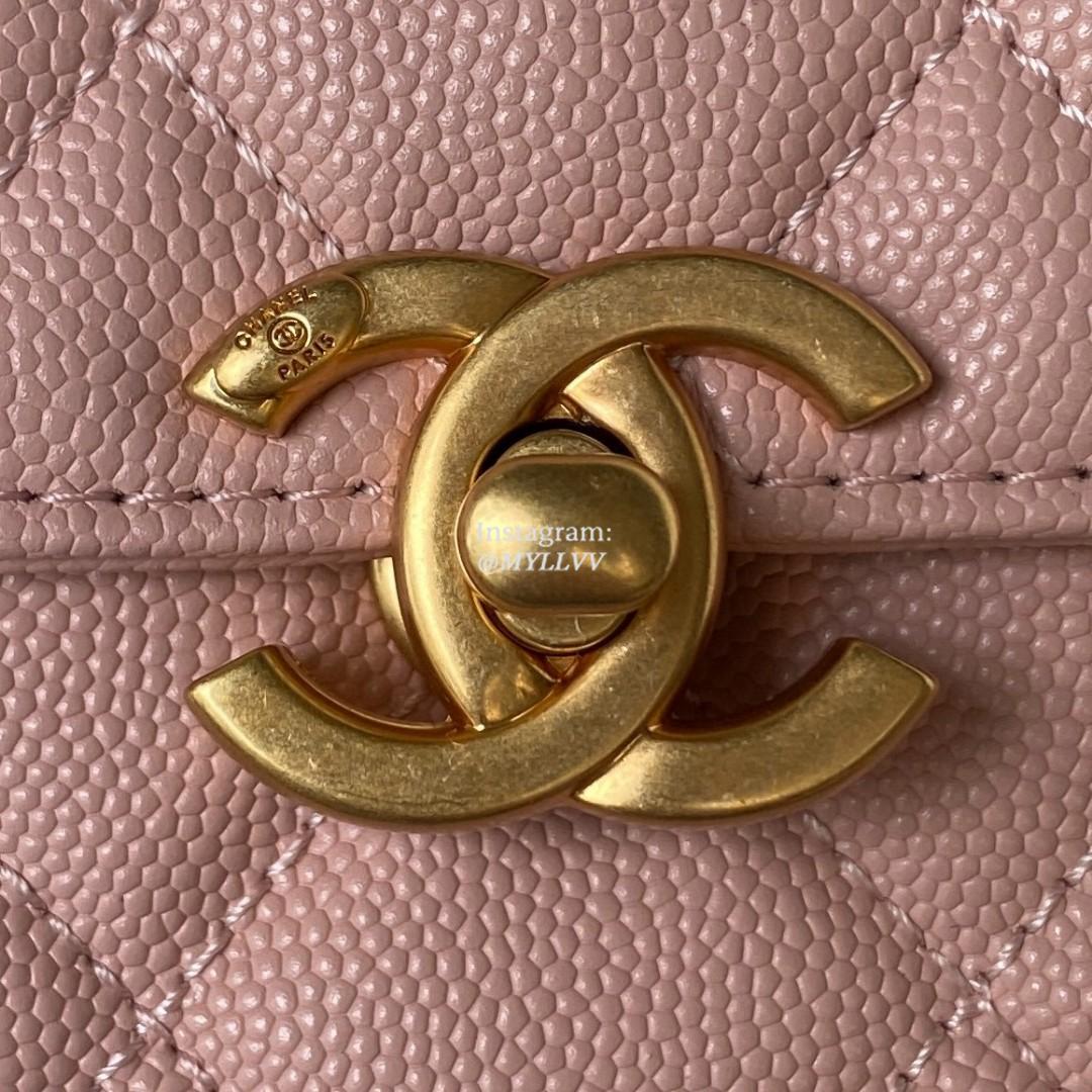 Top Quality Version:MYLLVV » Chanel Diamond Plaid Caviar Cowhide Handle Flap Bag Pink With Gold AS4008