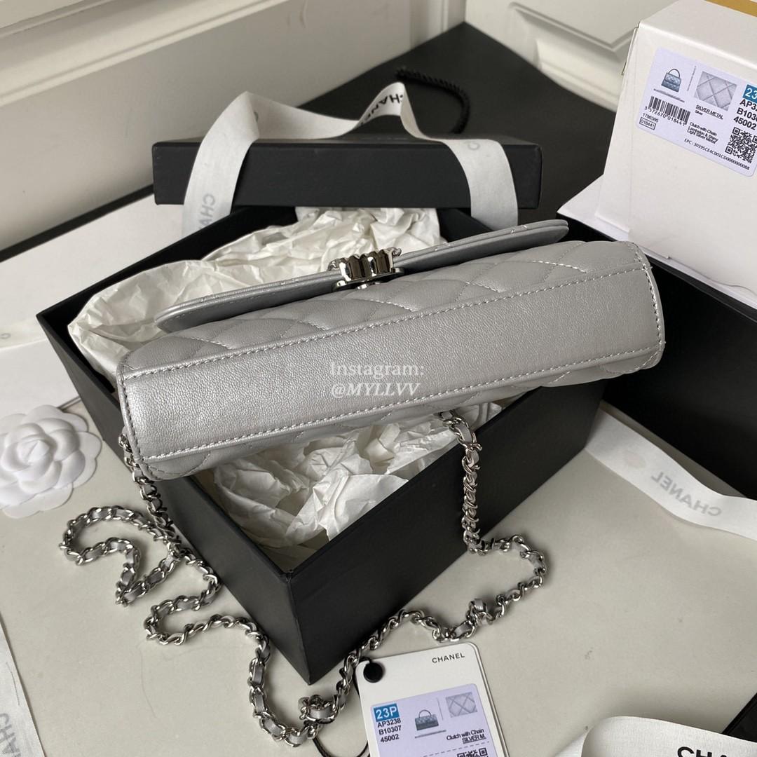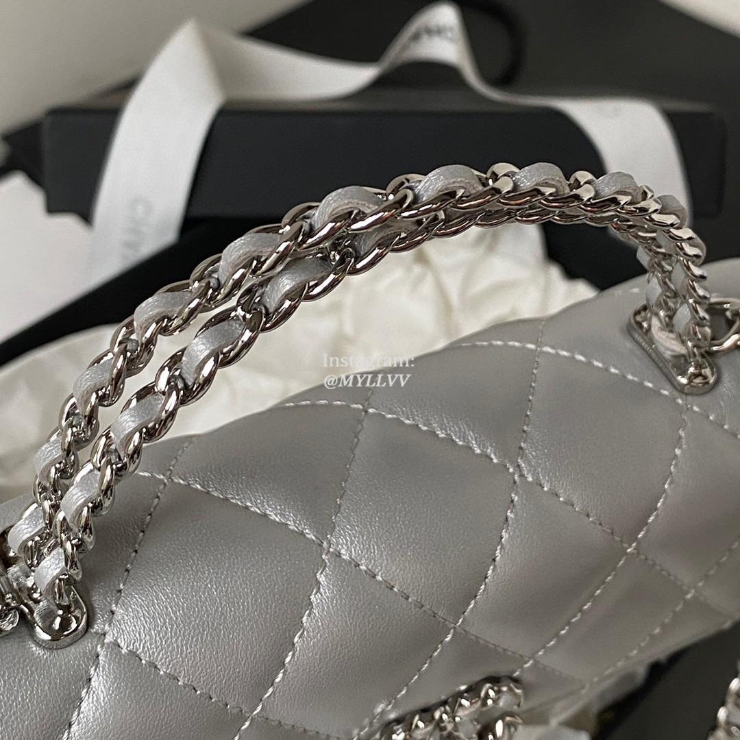 Top Quality Version:MYLLVV » Chanel Diamond Plaid Caviar Cowhide Handle Flap Bag Silver With Silver AP3238