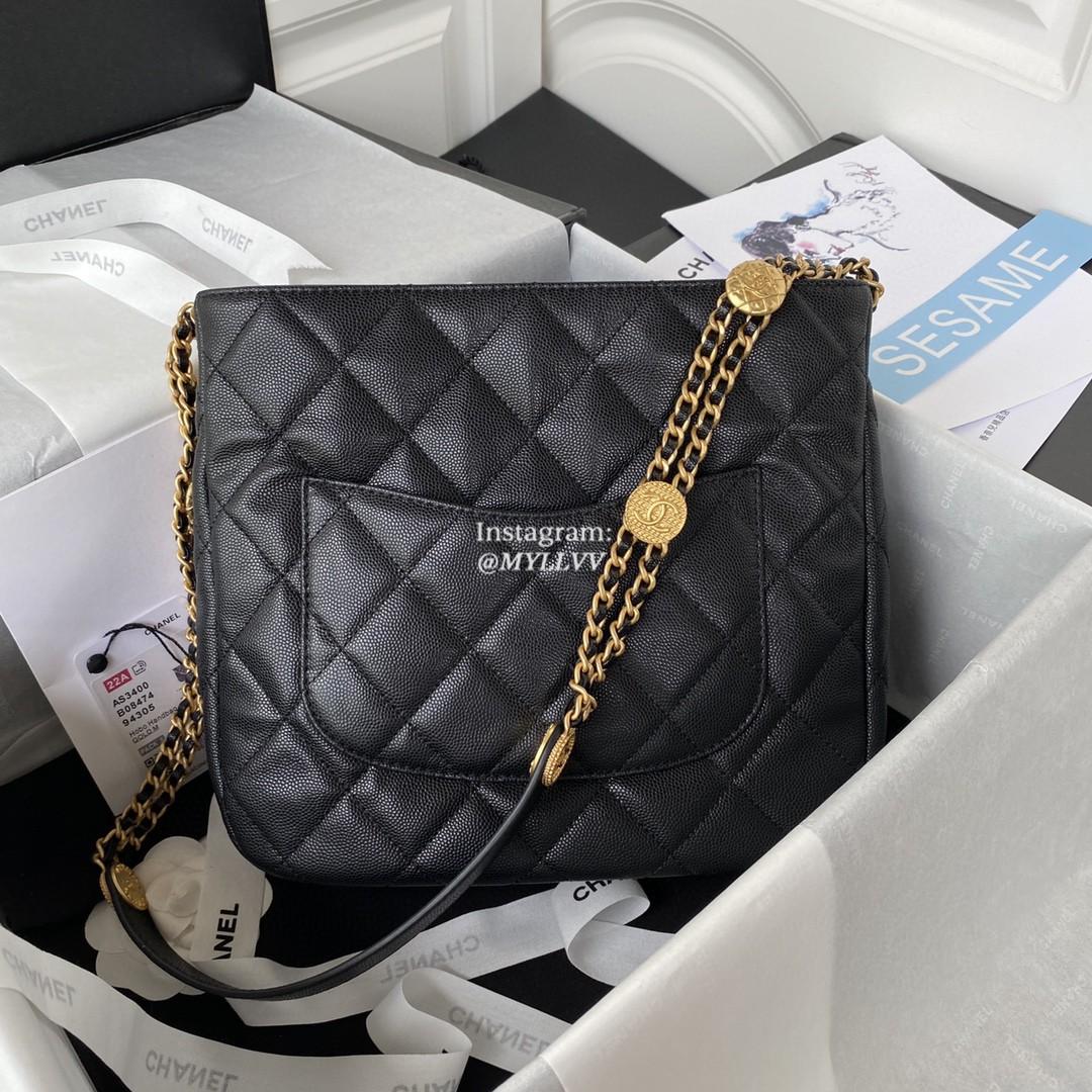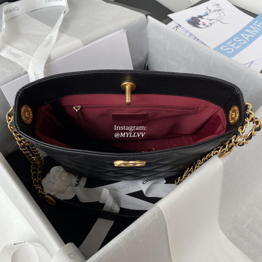 Top Quality Version:MYLLVV » Chanel Diamond Plaid Caviar Cowhide Hobo Bag Black With Gold AS3400